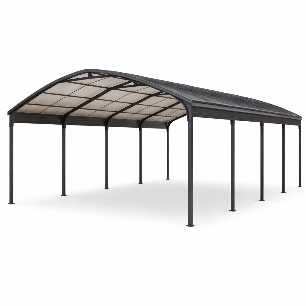 Carport Stahl mit Polycarbonatdach Schwarz Beige 600x300x260 cm