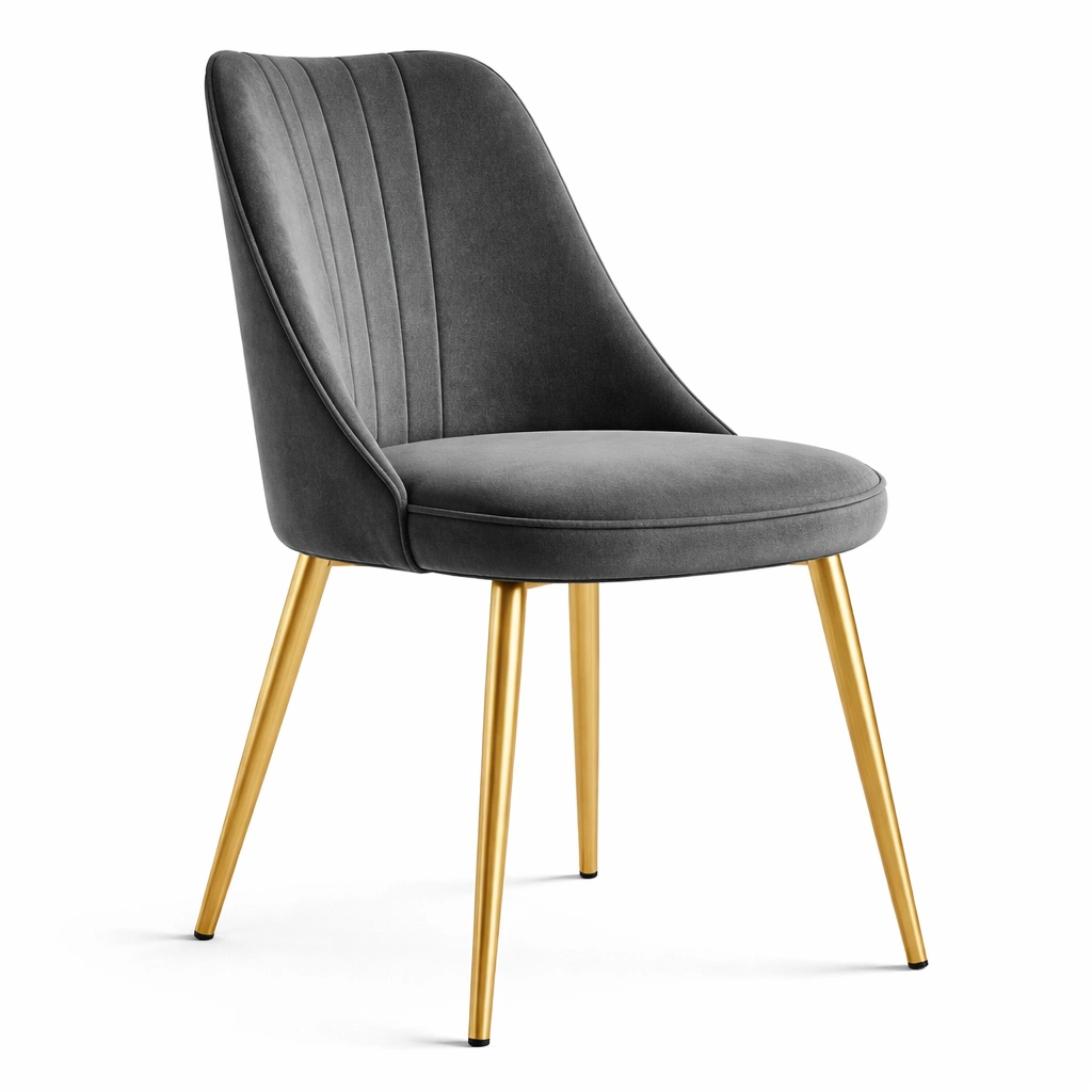 Essstuhl Samt Grau mit Metallbeinen Goldfarben