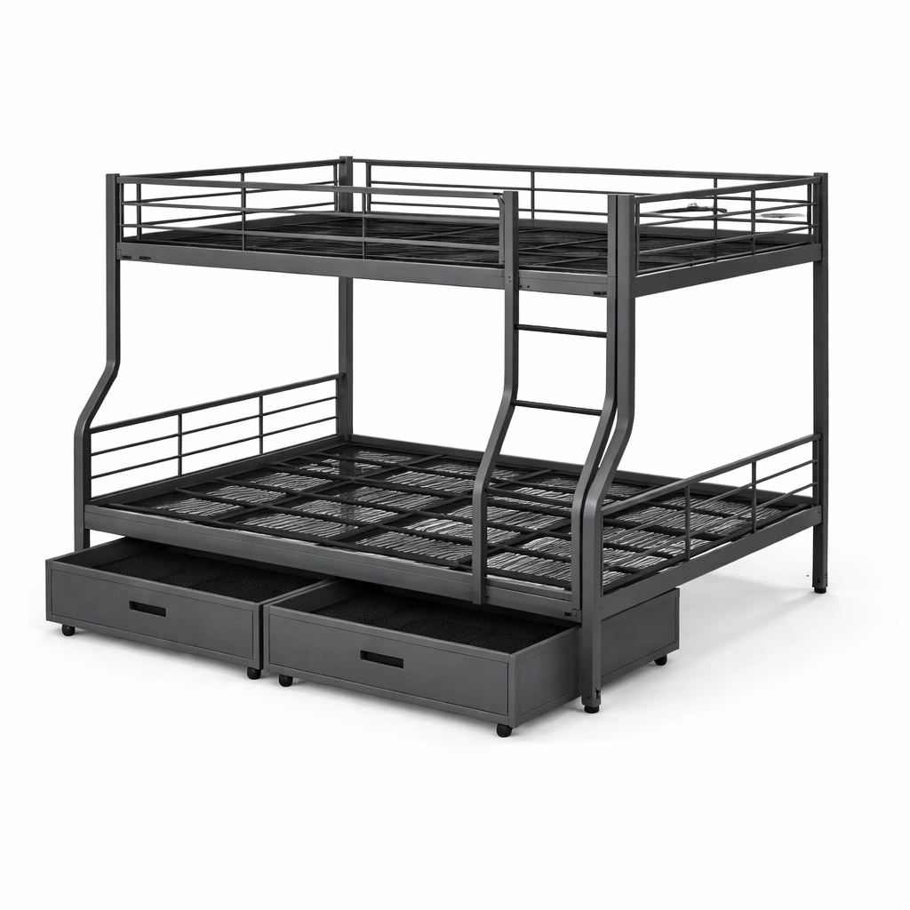 Etagenbett Metall Schwarz mit Leiter und Schubladen